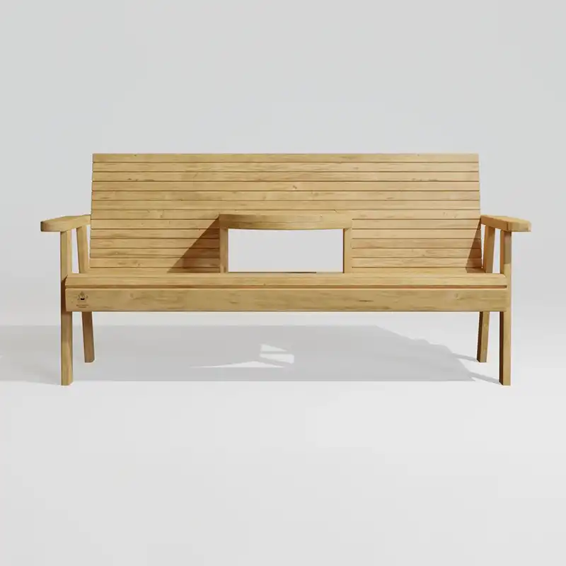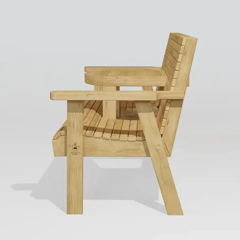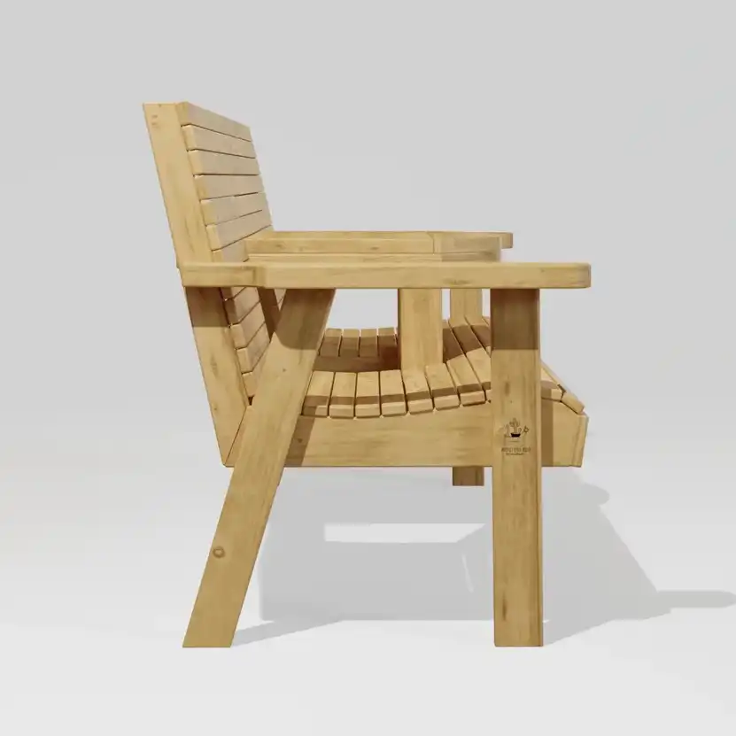 ספסל עץ מעוצב וייחודי מעץ אורן איכותי, מושלם לגינה או למרפסת.